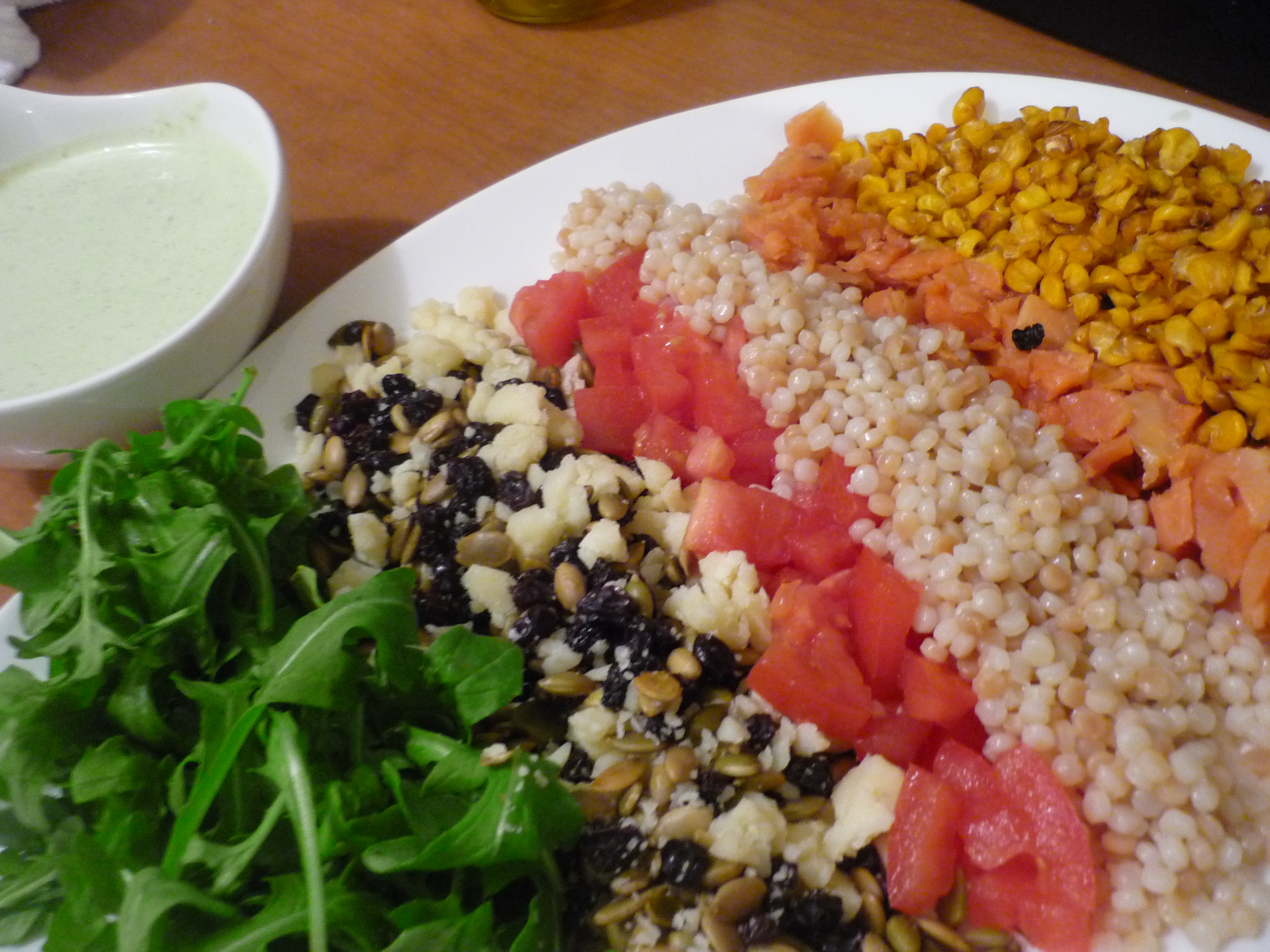 • Combine the asiago cheese, pepitas and currants and use as one row.
