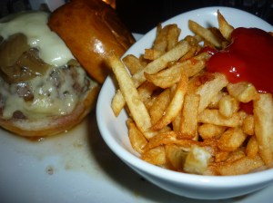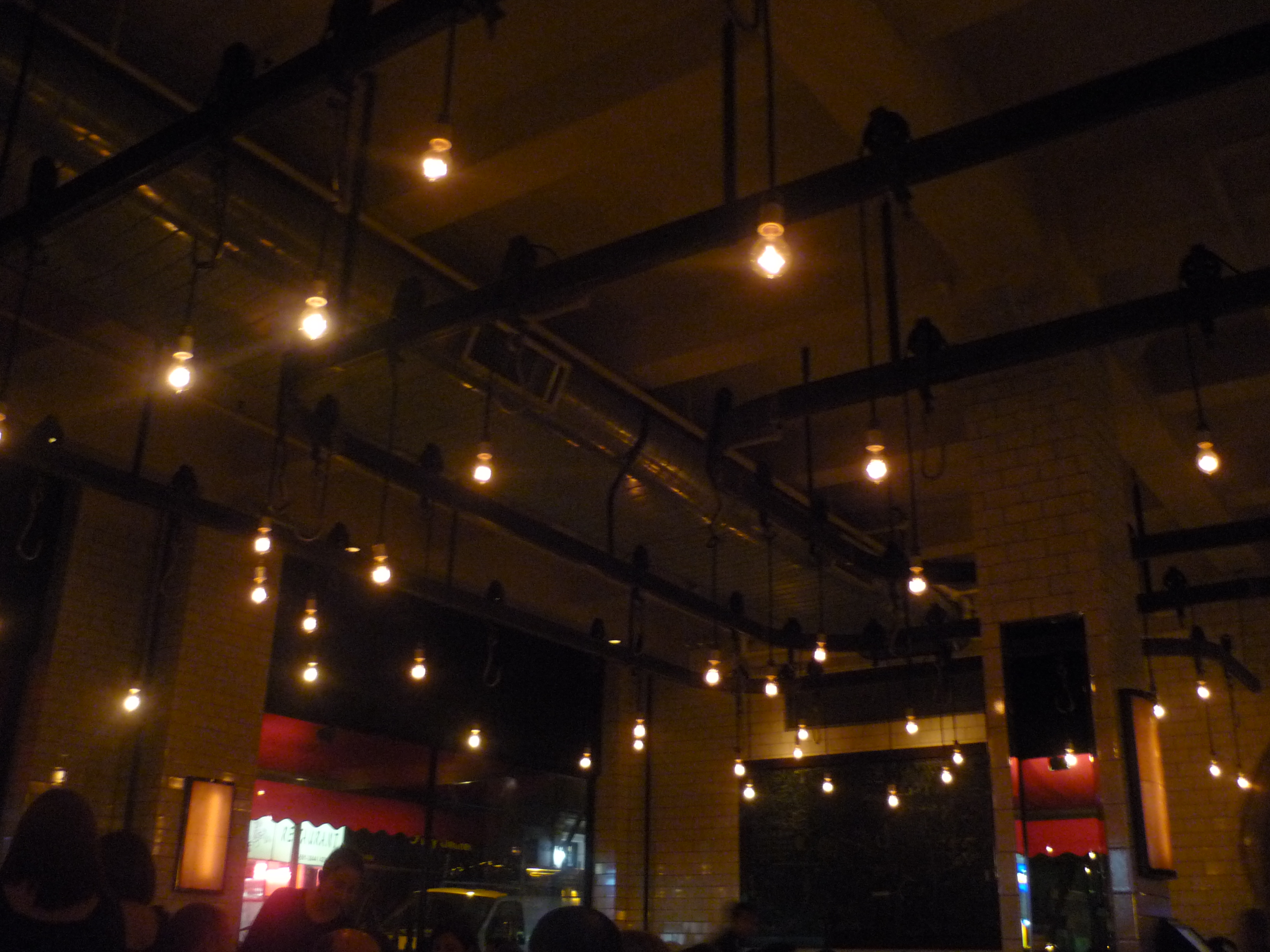 Located on 9th Avenue, near Times Square, Five Napkin Burger is a fantastic and crowded restaurant. Subway tiles on the wall, backlit back bar and bare lightbulbs hanging from butcher hooks, this is a great place. Even on a Tuesday night, we had a 30 minute wait. But no worries! A beeper is given to you for when your table is ready. The back bar is great with reasonably priced (please put in the context of NYC) cocktails. So enjoy one or two while you wait for your beeper to start shaking.