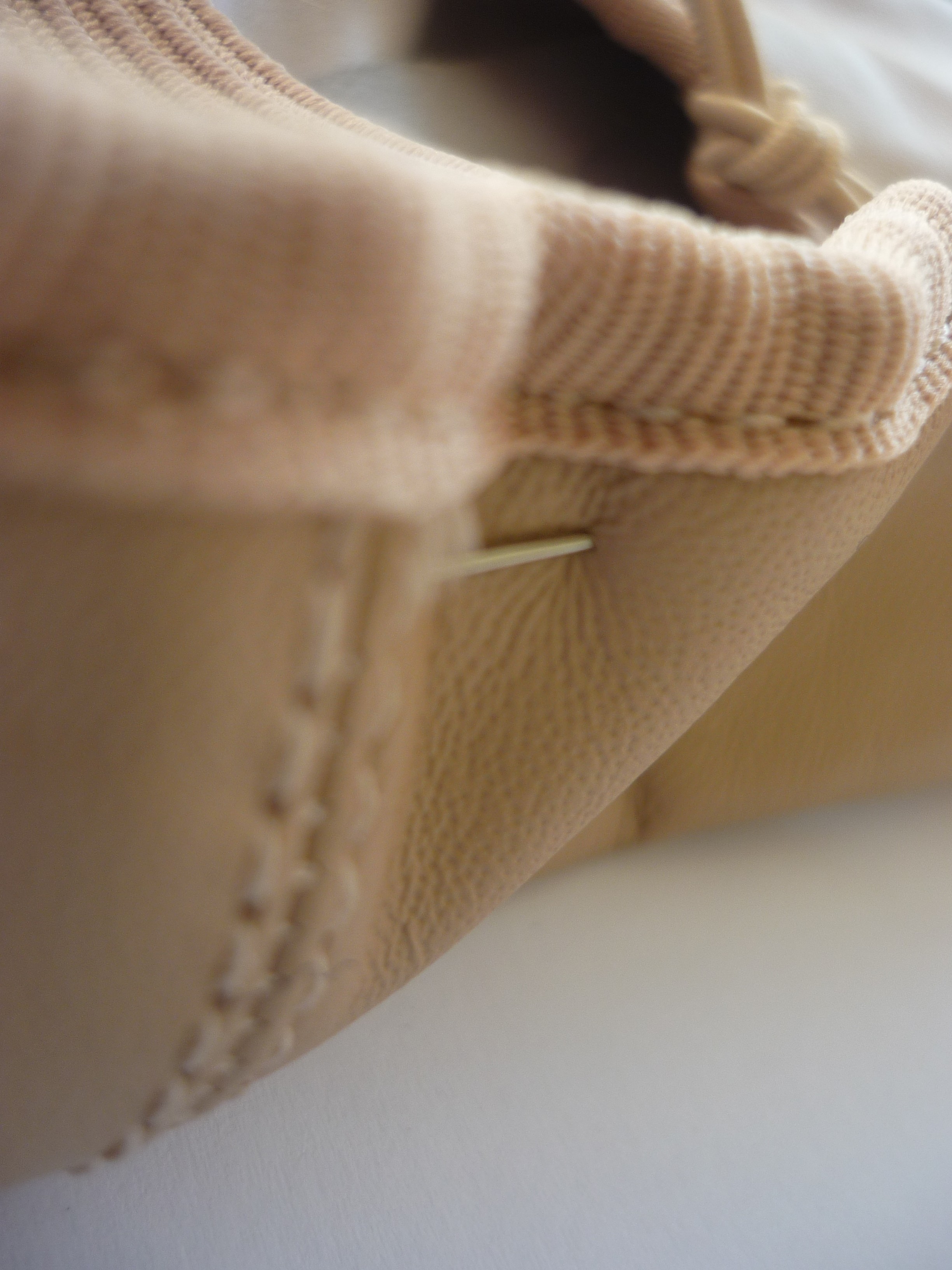 Well thank you to the power of the Internet and no thanks to the Capezio marketing department (whoever handles packaging should really be whipped using these small elastic strings), I had a major discovery! These two little straps – I am supposed to sew them on to the shoe across the top so the shoe will stay on. I was wondering how I could have avoided that whole debacle during the back kicks.