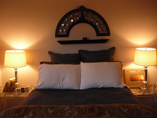 I moved two matching lamps from the living room into the bedroom for symmetry. And I think it turned out pretty good. What do you think?
