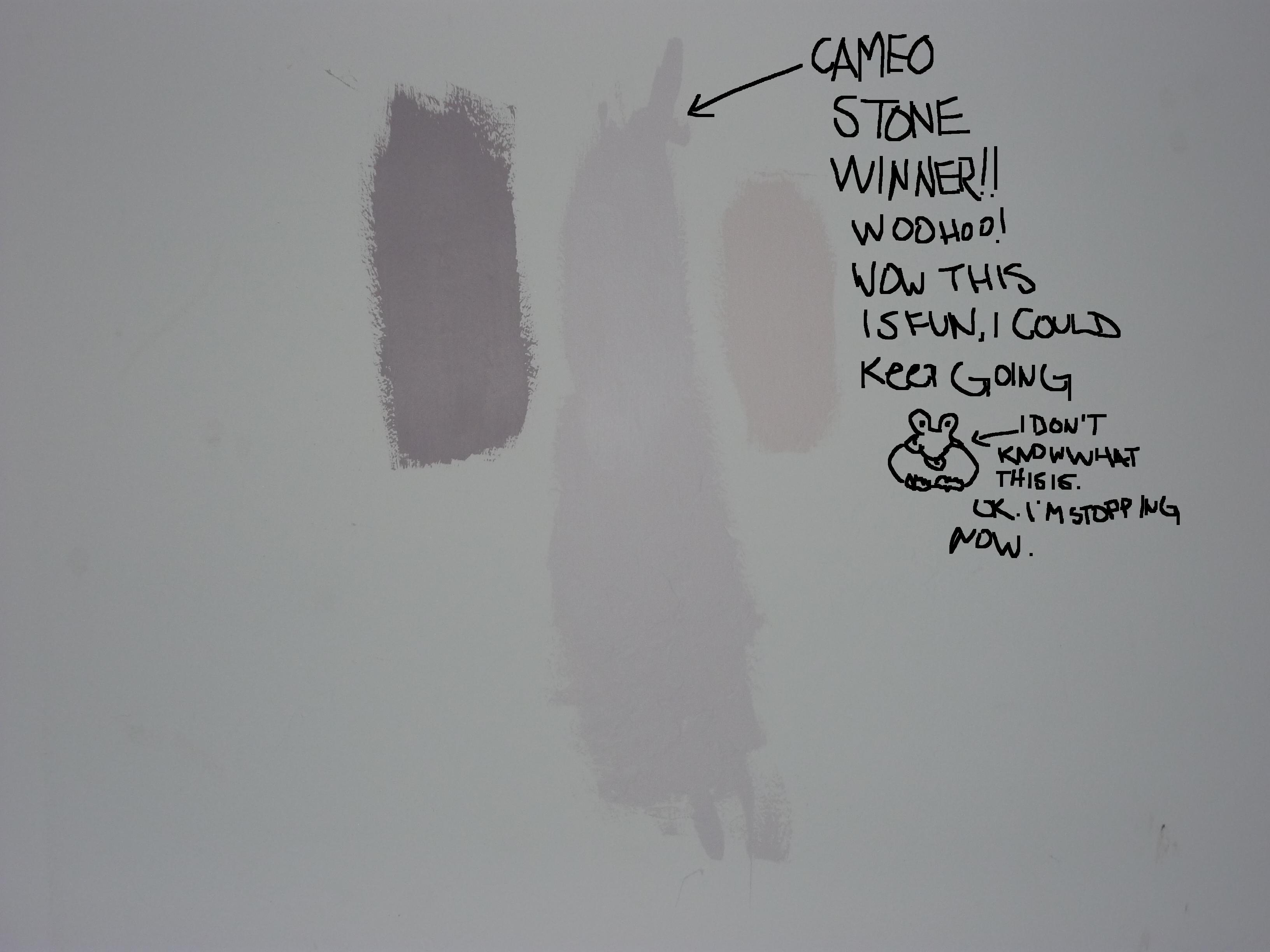 This is a view of the three colors at night. I also reviewed them in the morning. And I also put them on all four walls. I became partial to the lighter two colors. I also needed a lighter color because the bedroom is small and gets a large amount of sunlight.
