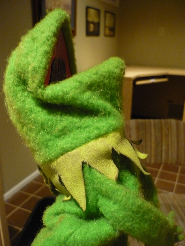 Lynne with an E…yeless frog puppet on her hand, literally.