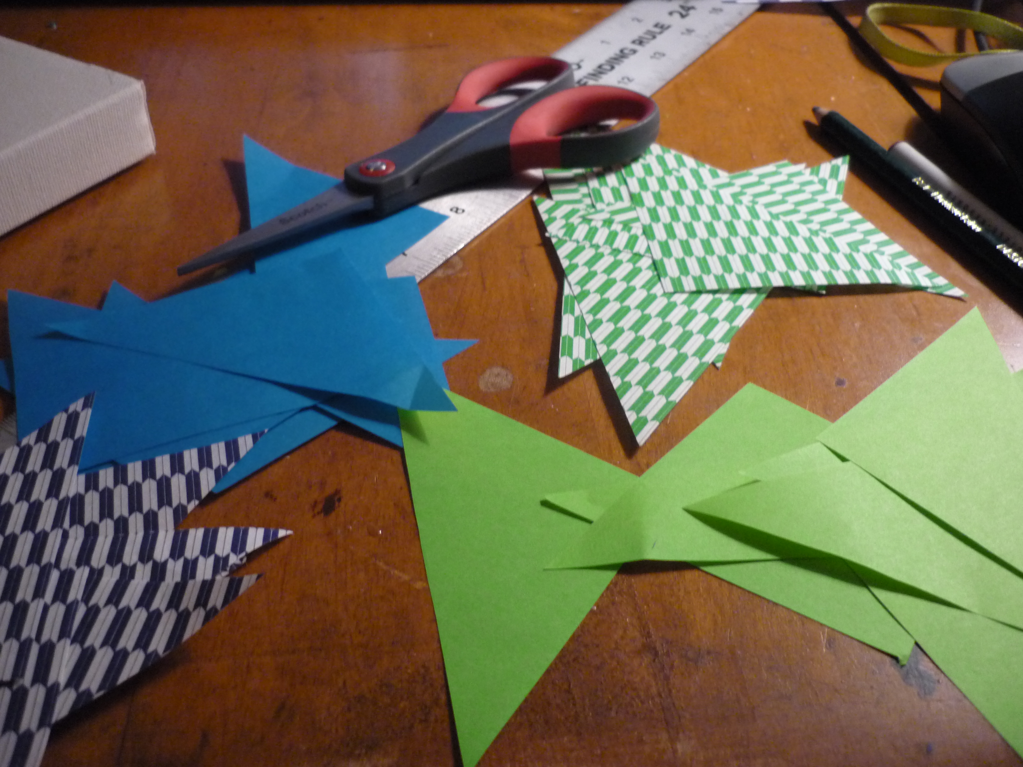 Well, first I strung’em up and now I am plastering them. I am showing the paper cranes no mercy.