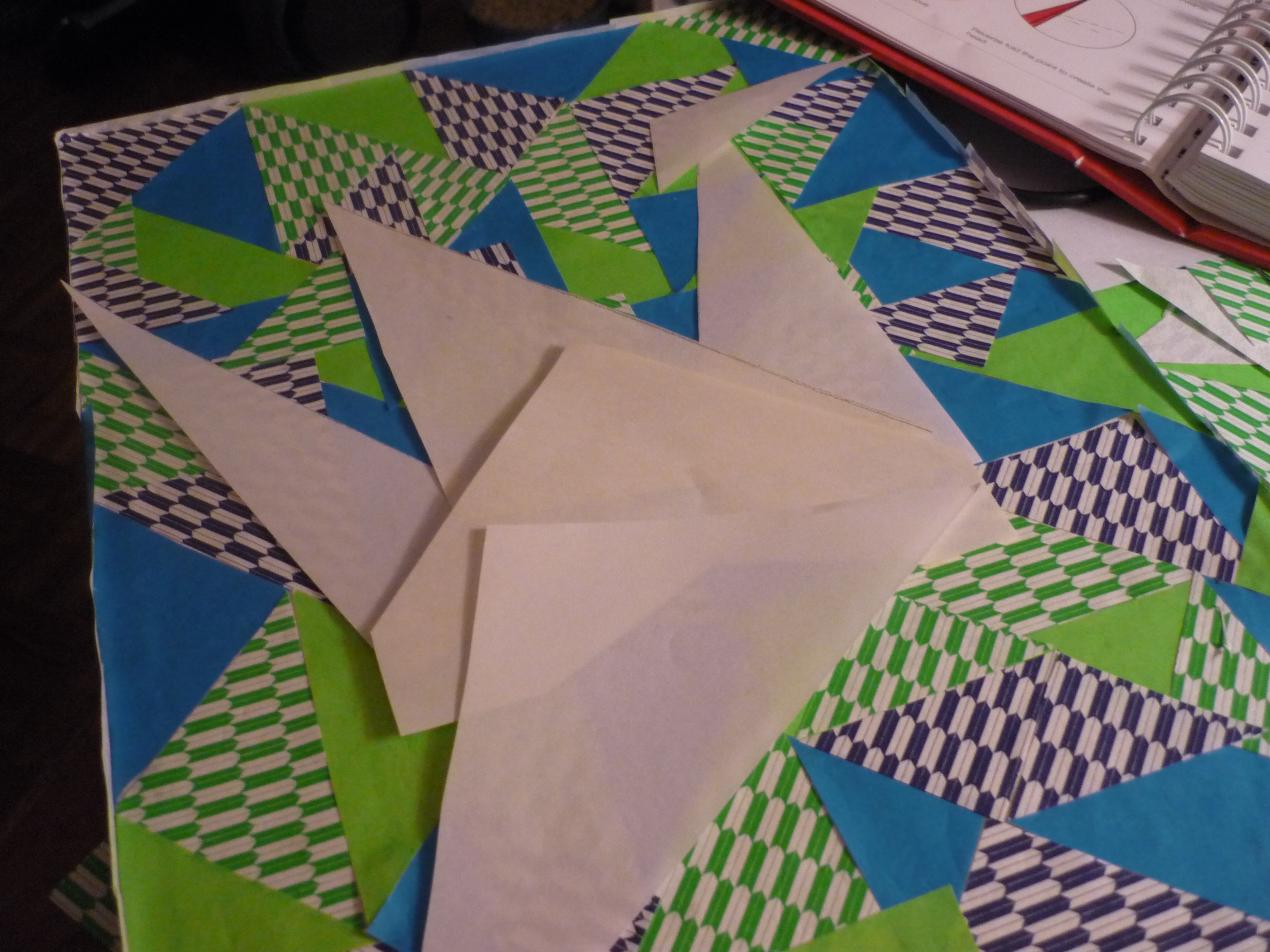 Using origami paper, I cut triangles and glued them in a pattern on the canvas.